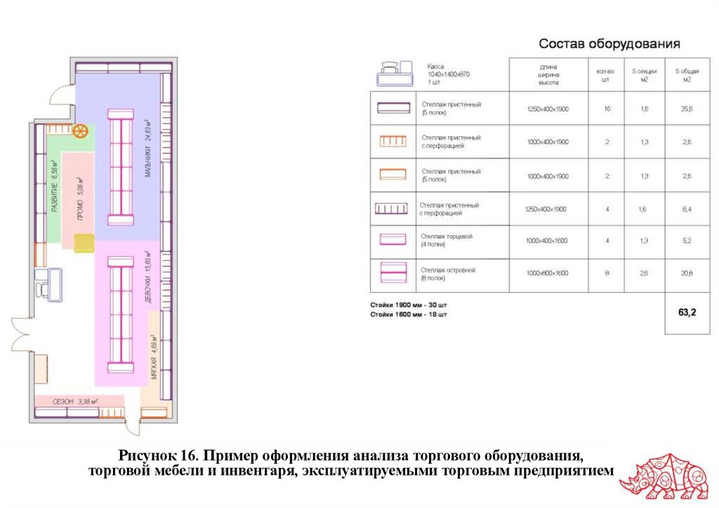 Рисунок 16. Пример оформления анализа торгового оборудования,торговой мебели и инвентаря, эксплуатируемыми торговым предприятием