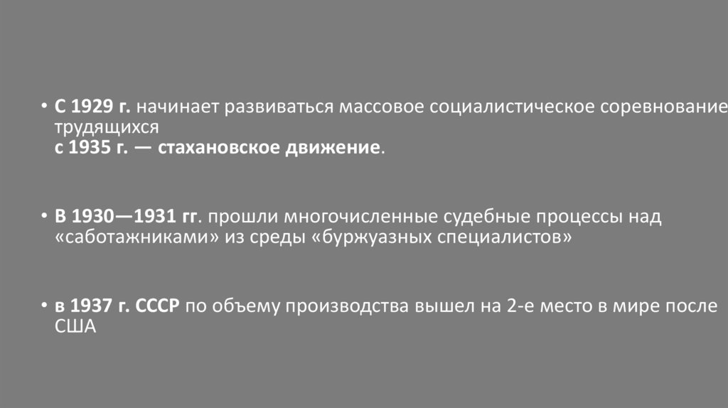 • в 1937 г. СССР по объему производства вышел на 2-е место в мире после