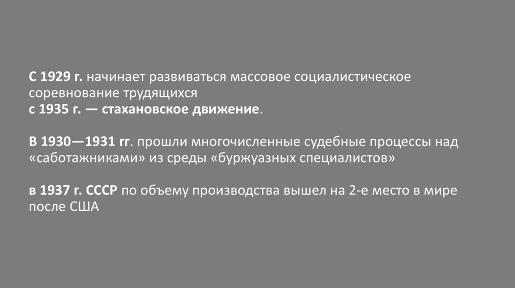 • С 1929 г. начинает развиваться массовое социалистическое соревнованиетрудящихся