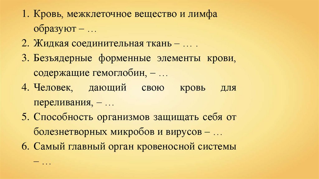 1. Кровь, межклеточное вещество и лимфаобразуют – …