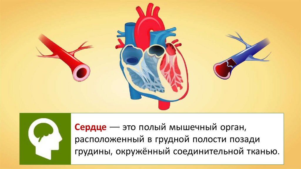 Сердце — это полый мышечный орган,расположенный в грудной полости позади