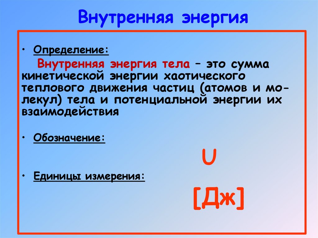 Внутренняя энергия телаЕвн = Еп + Ек всех молекул тела