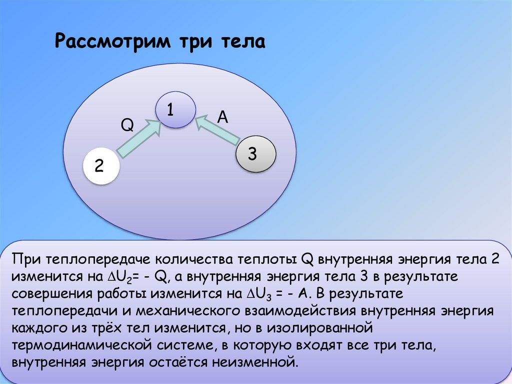 При теплопередаче количества теплоты Q внутренняя энергия тела 2