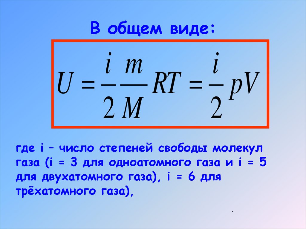 Внутренняя энергия идеального одноатомного газа зависит лишь