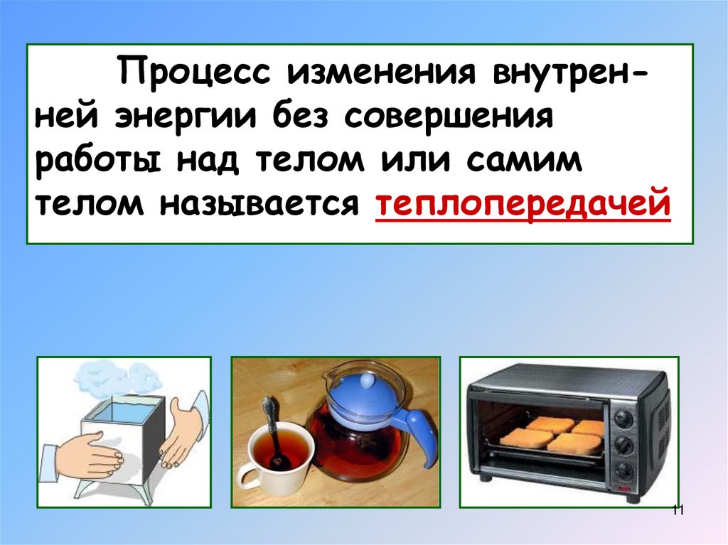 Процесс изменения внутренней энергии без совершенияработы над телом или самим