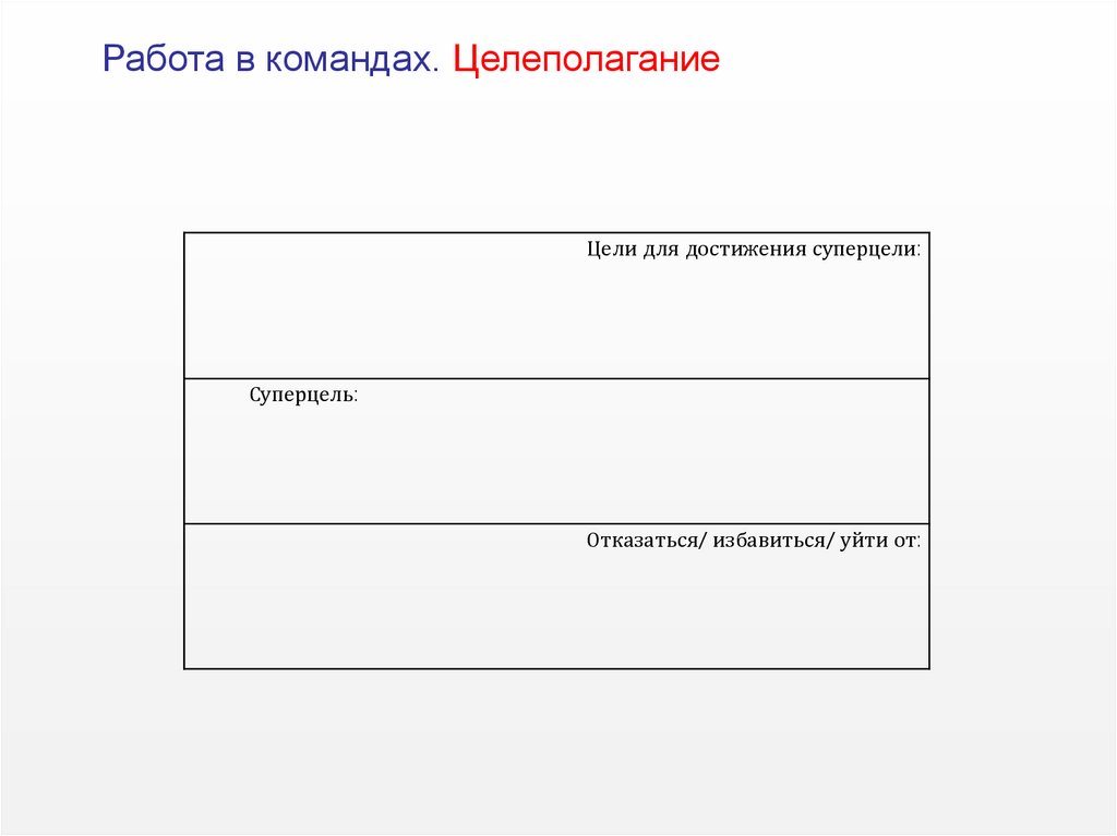 Работа в командах. ЦелеполаганиеЦели для достижения суперцели: