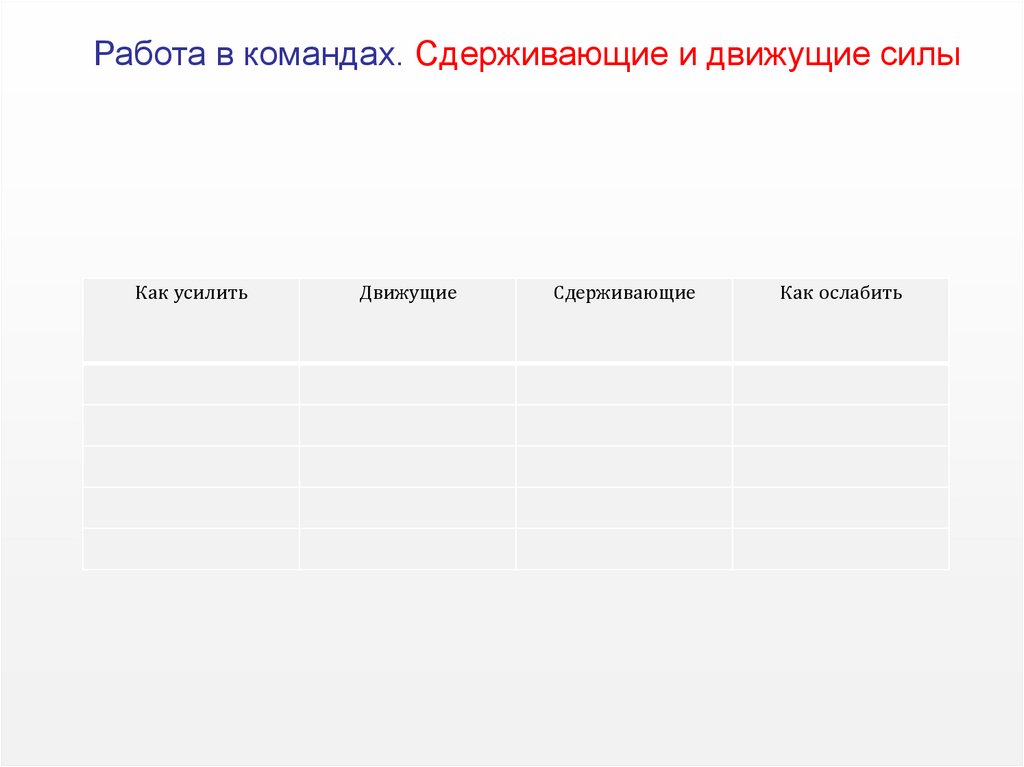 Работа в командах. Сдерживающие и движущие силыКак усилить