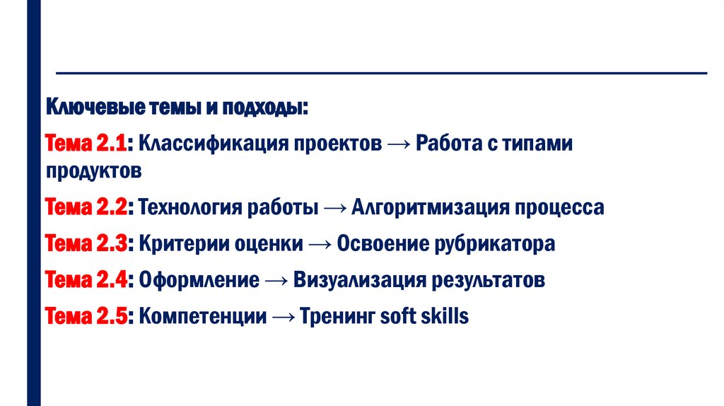 - Темы 2.1-2.5: Проектный продукт, технология работы, оценка
