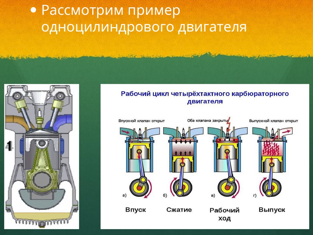 Рассмотрим примеродноцилиндрового двигателя