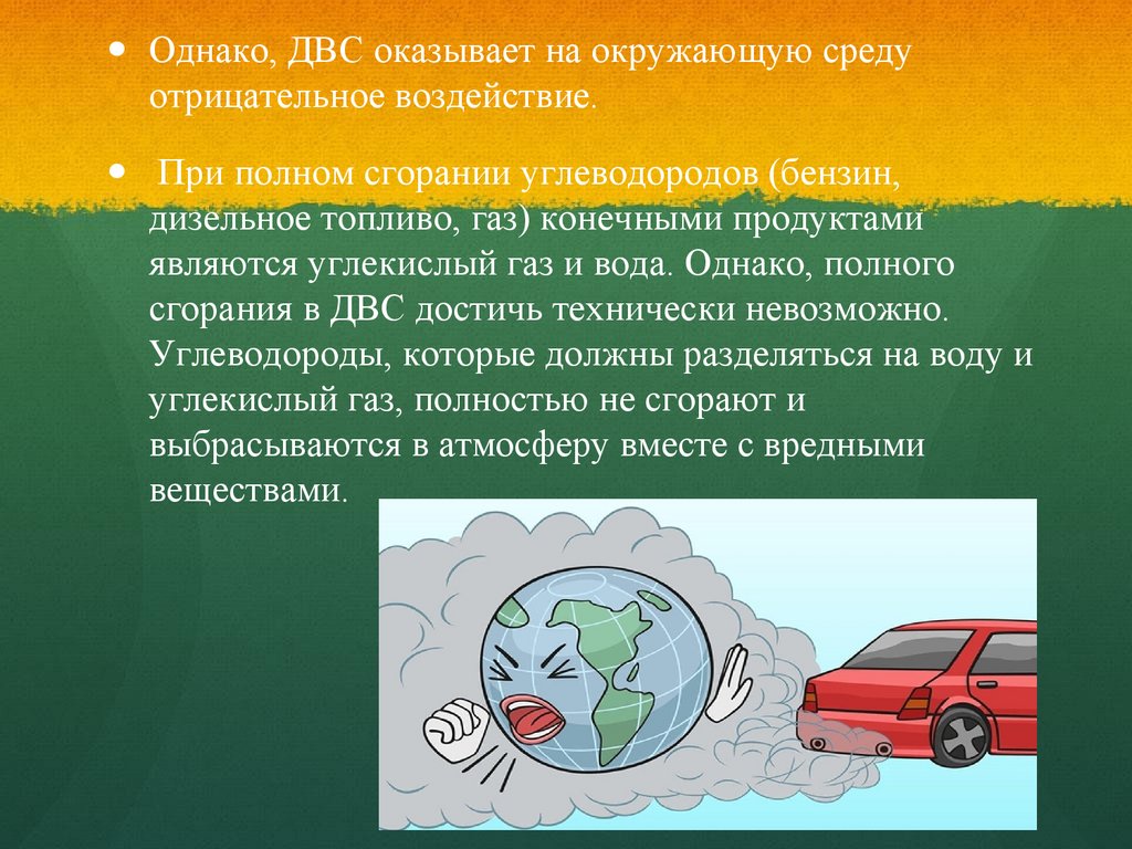 Однако, ДВС оказывает на окружающую средуотрицательное воздействие.