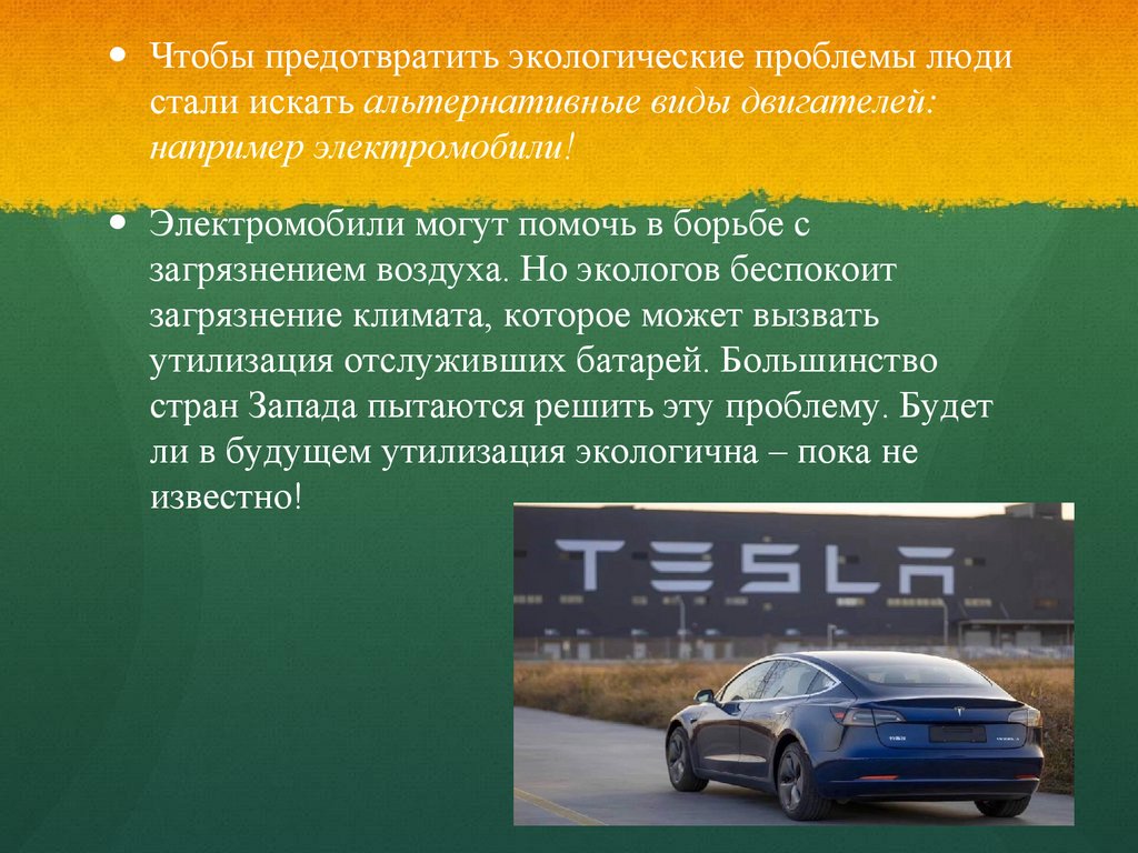 Чтобы предотвратить экологические проблемы людистали искать альтернативные виды двигателей: