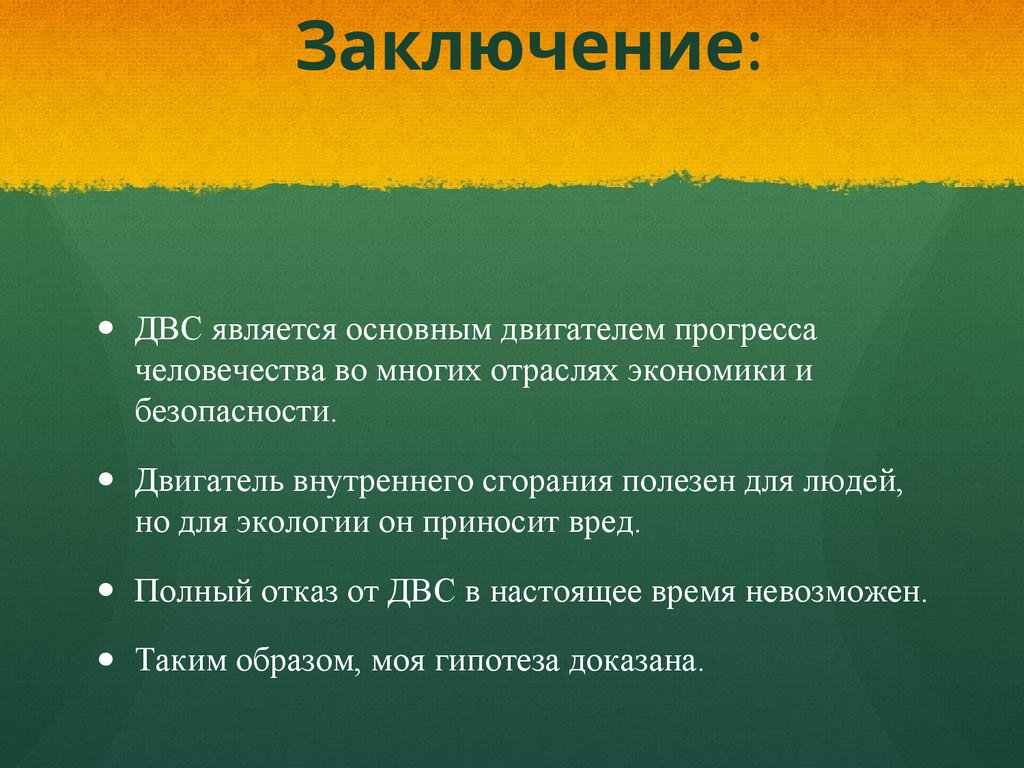Заключение:ДВС является основным двигателем прогресса