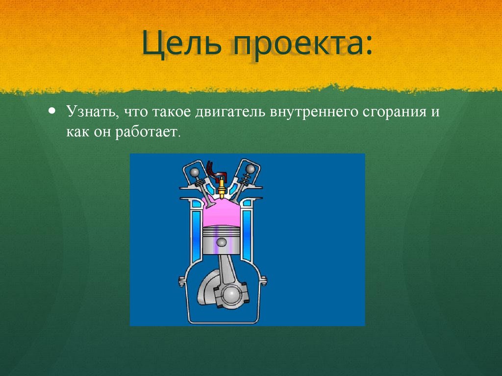 Цель проекта:Узнать, что такое двигатель внутреннего сгорания и