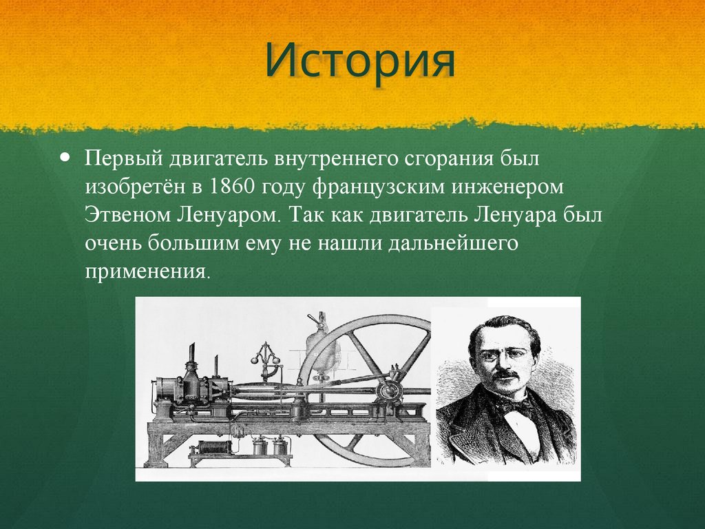 ИсторияПервый двигатель внутреннего сгорания был