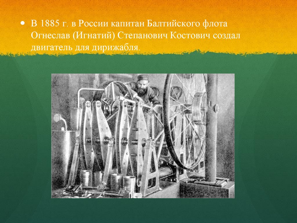 В 1885 г. в России капитан Балтийского флотаОгнеслав (Игнатий) Степанович Костович создал