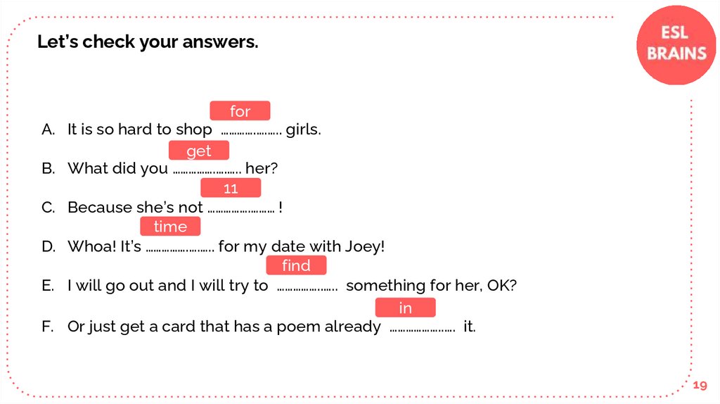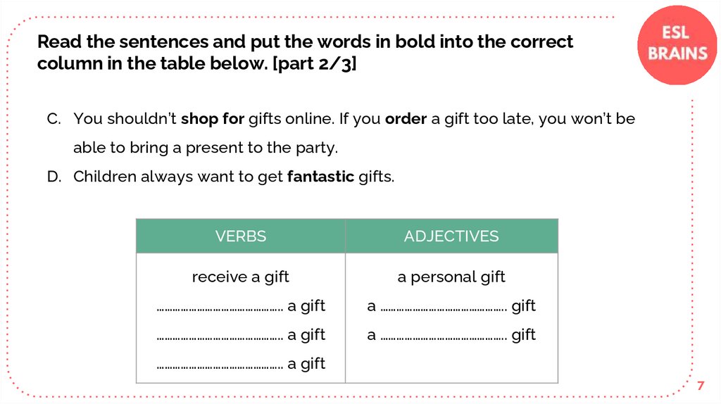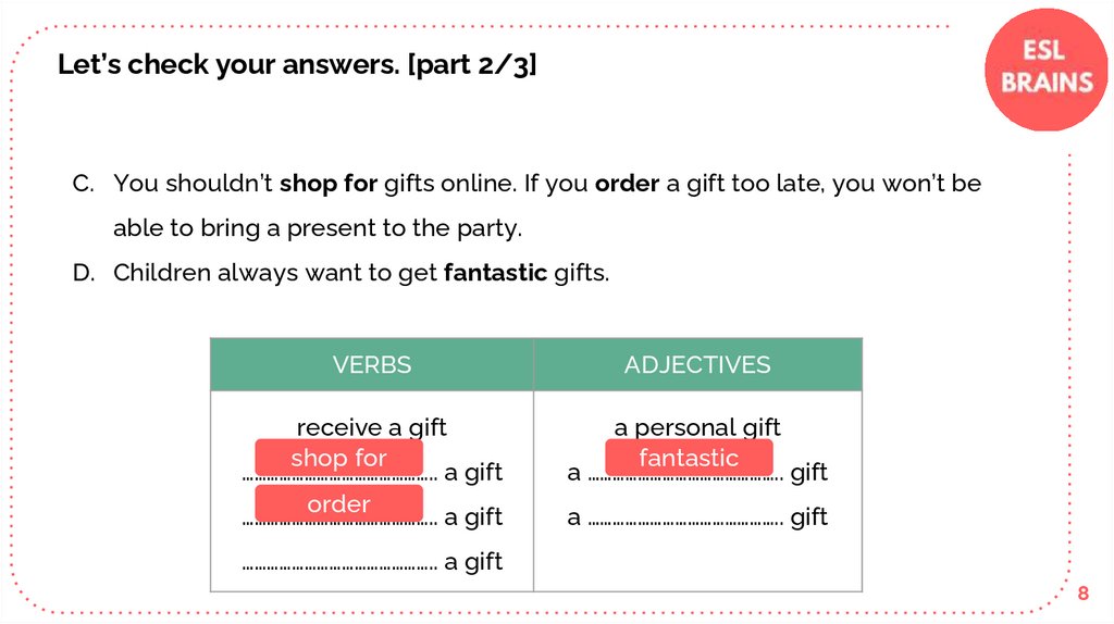 Let’s check your answers. [part 2/3]C. You shouldn’t shop for gifts online. If you order a gift too late, you won’t be