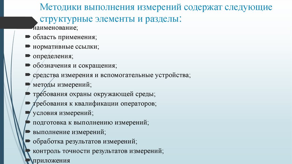 3. Методики выполнения измерений содержат следующие структурные элементы и разделы: