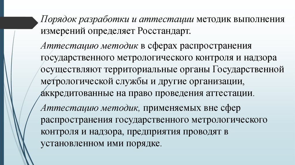 Порядок разработки и аттестации методик выполненияизмерений определяет Росстандарт.