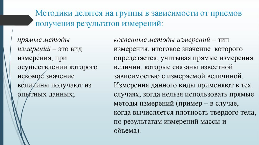 Методики делятся на группы в зависимости от приемовполучения результатов измерений: