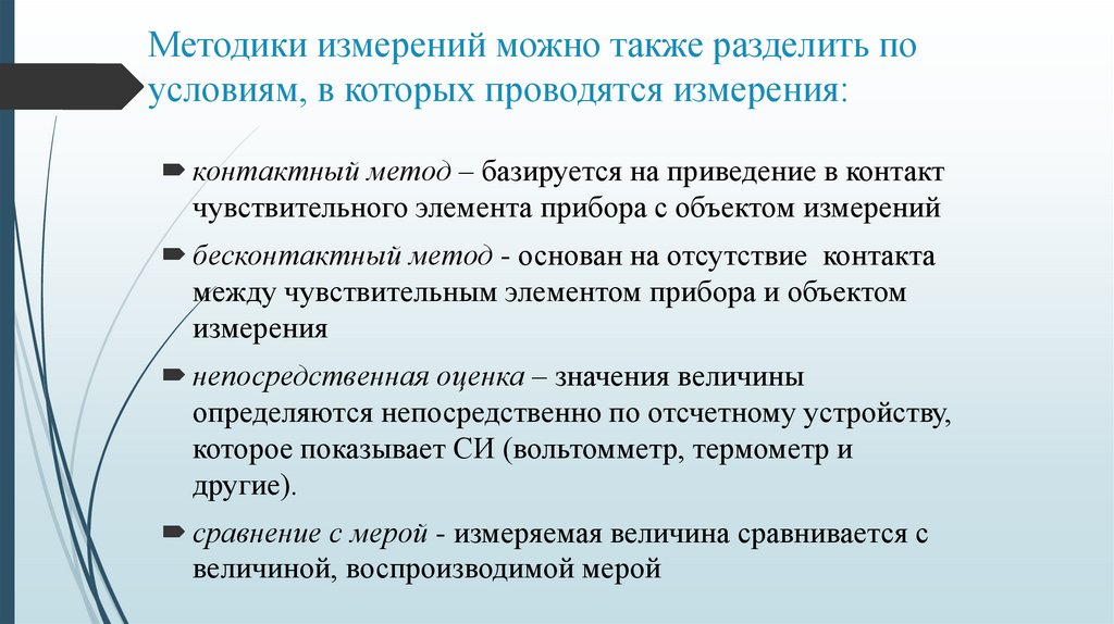 6. Методики измерений можно также разделить по условиям, в которых проводятся измерения: