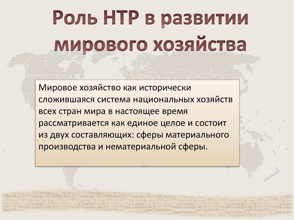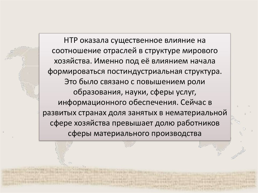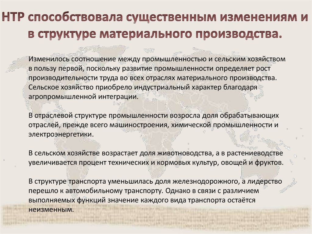 НТР оказала существенное влияние насоотношение отраслей в структуре мирового