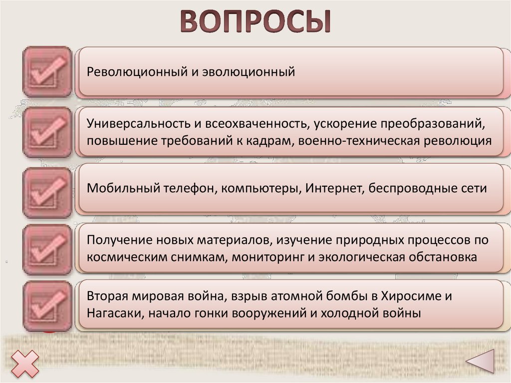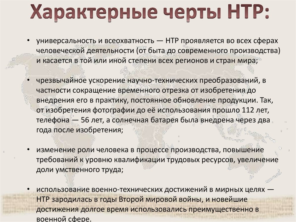 • универсальность и всеохватность — НТР проявляется во всех сферахчеловеческой деятельности (от быта до современного производства)