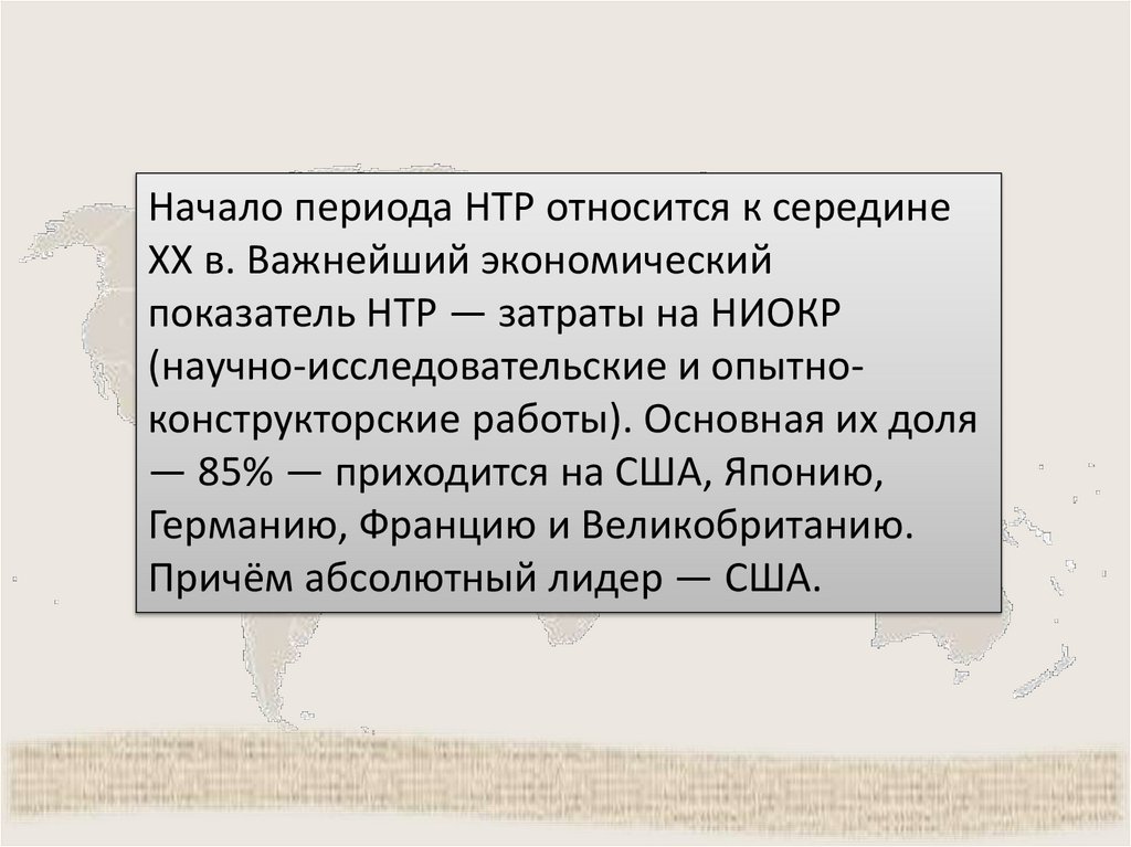 Начало периода НТР относится к серединеXX в. Важнейший экономический