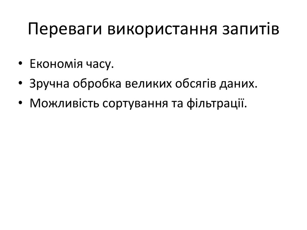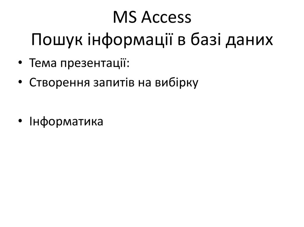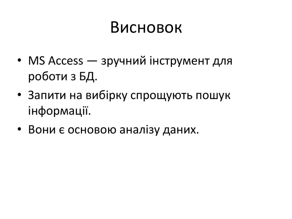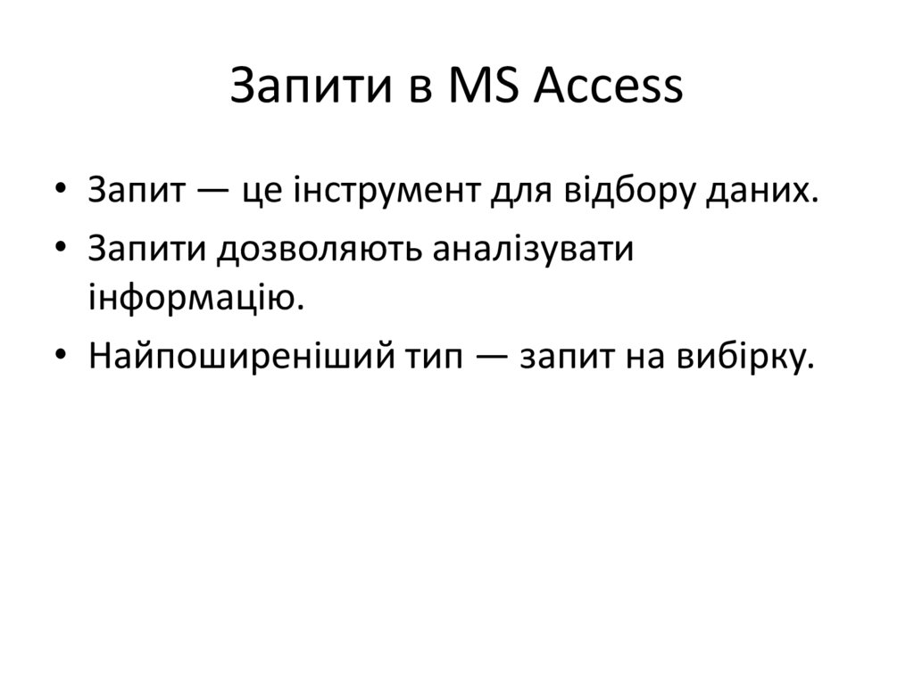 Запити в MS Access• Запит — це інструмент для відбору даних.