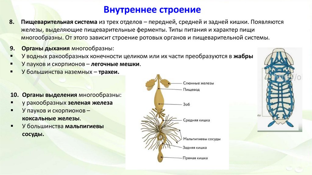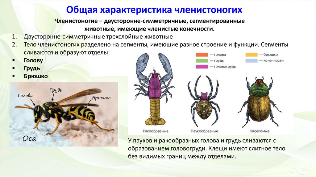 Тело членистоногих разделено на сегменты, имеющие разное строение и функции. Сегменты