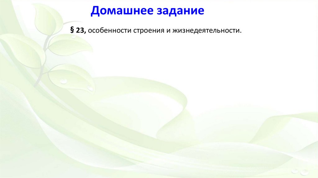 Домашнее задание§ 23, особенности строения и жизнедеятельности.