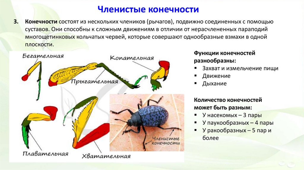 Конечности состоят из нескольких члеников (рычагов), подвижно соединенных с помощью
