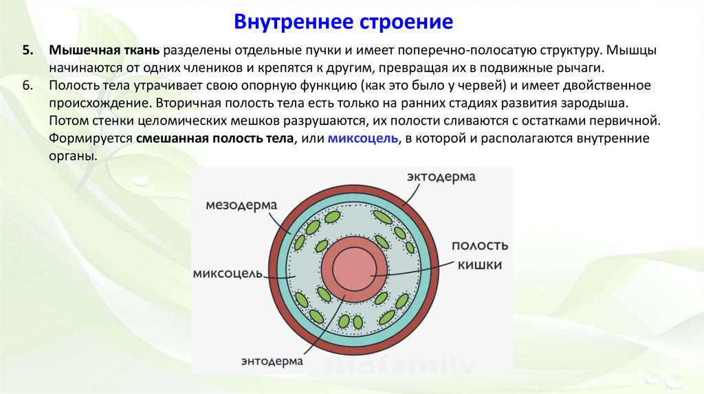 Формируется смешанная полость тела, или миксоцель, в которой и располагаются внутренние