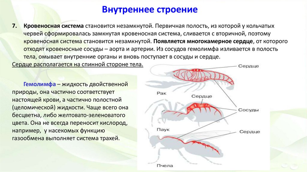 кровеносная система становится незамкнутой. Появляется многокамерное сердце, от которого