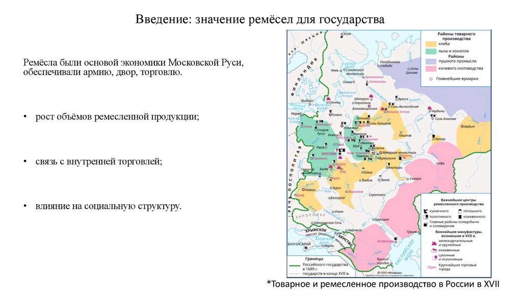 Введение: значение ремёсел для государстваРемёсла были основой экономики Московской Руси,