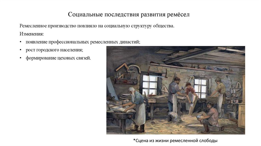 Социальные последствия развития ремёселРемесленное производство повлияло на социальную структуру общества.