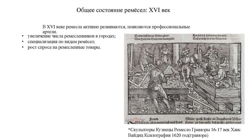 Общее состояние ремёсел: XVI векВ XVI веке ремесла активно развиваются, появляются профессиональные