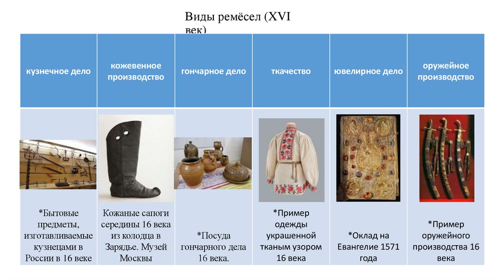 Развитие ремёсел в Московской Руси в XVI–XVII вв