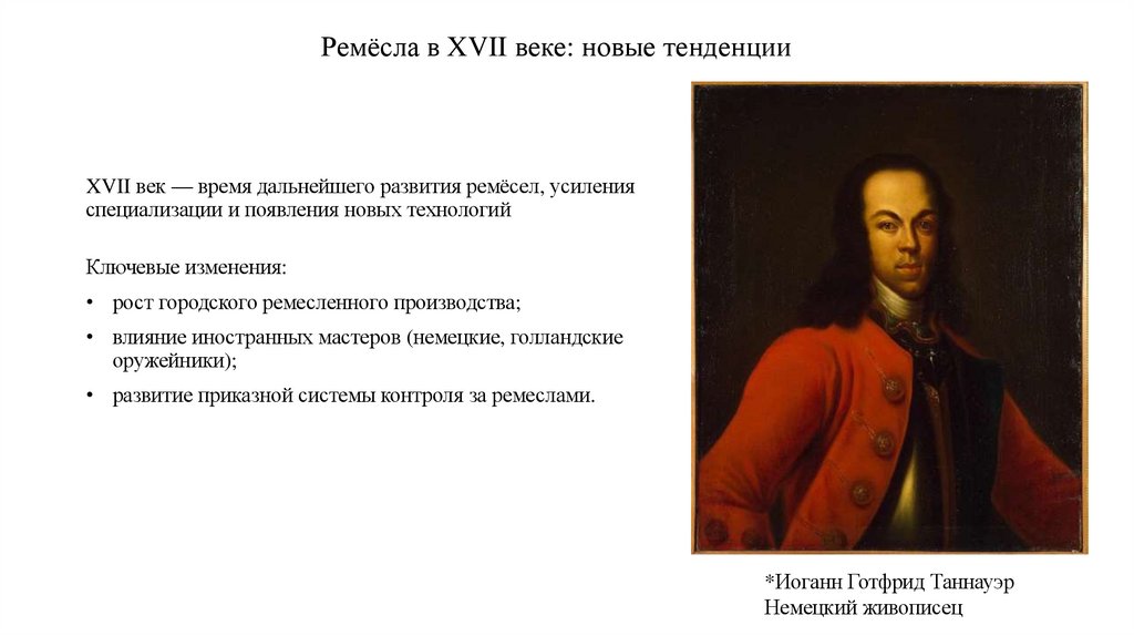 Ремёсла в XVII веке: новые тенденцииXVII век — время дальнейшего развития ремёсел, усиления