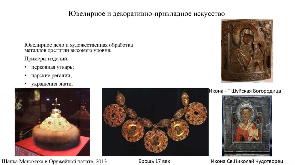 • Иллюстративные материалы из музеев (Исторический музей, Оружейная палата).