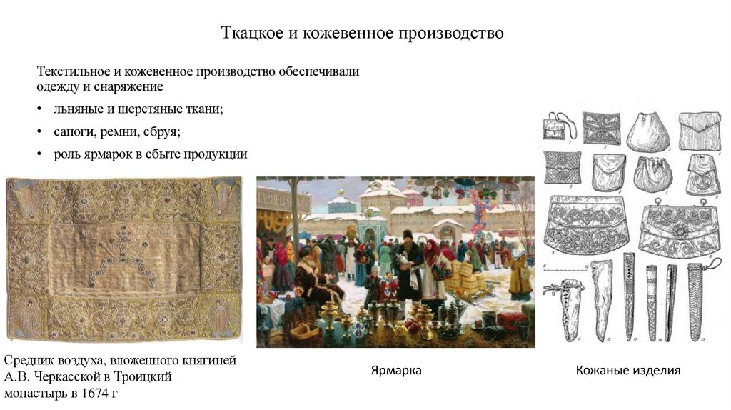 Ткацкое и кожевенное производствоТекстильное и кожевенное производство обеспечивали
