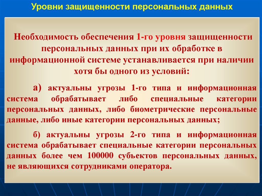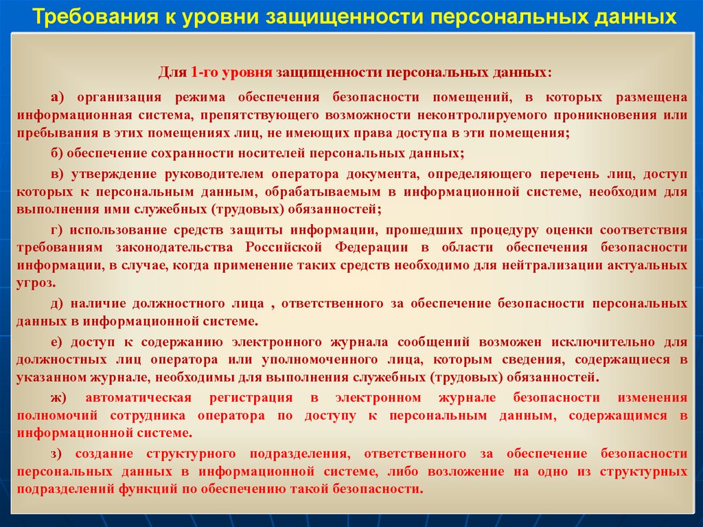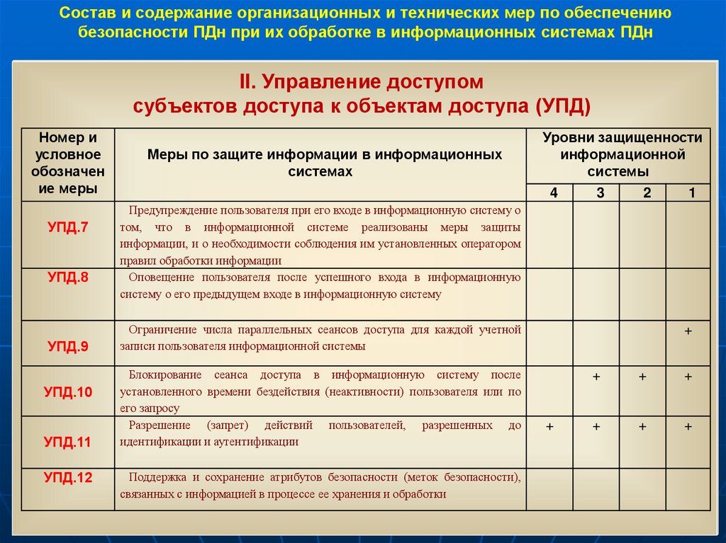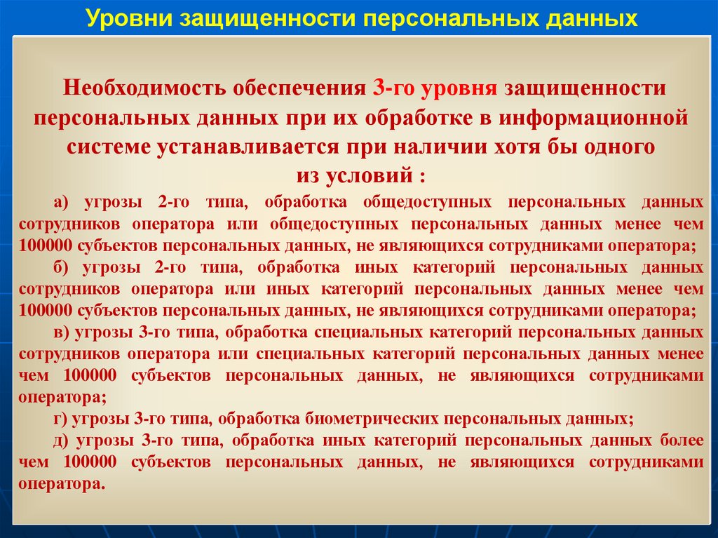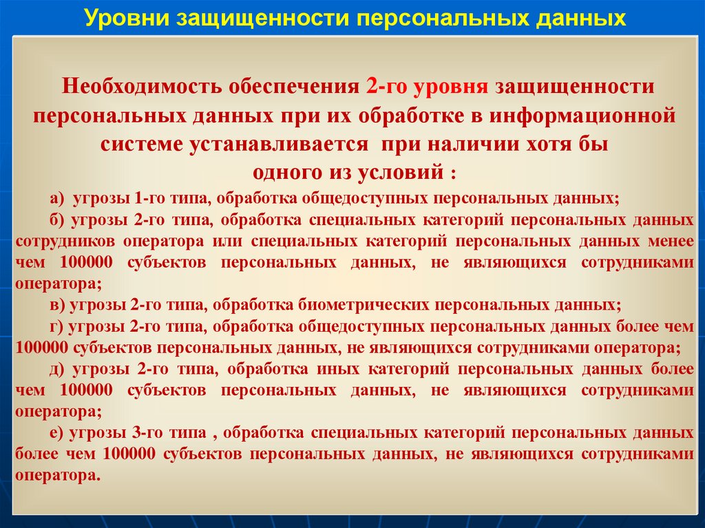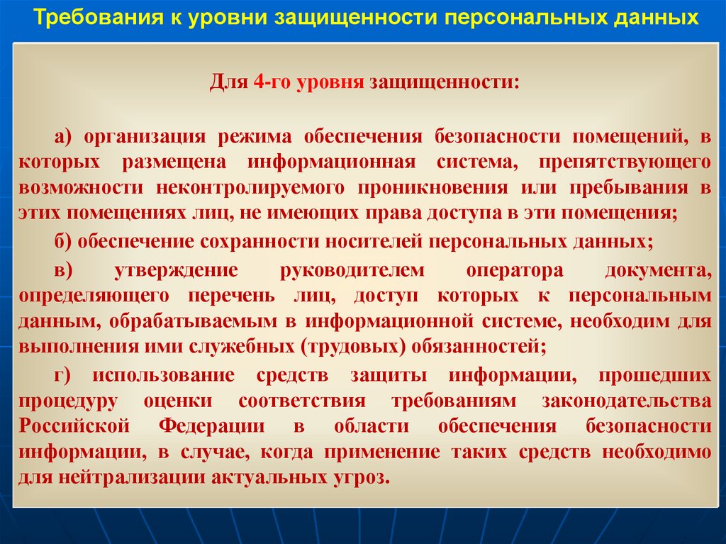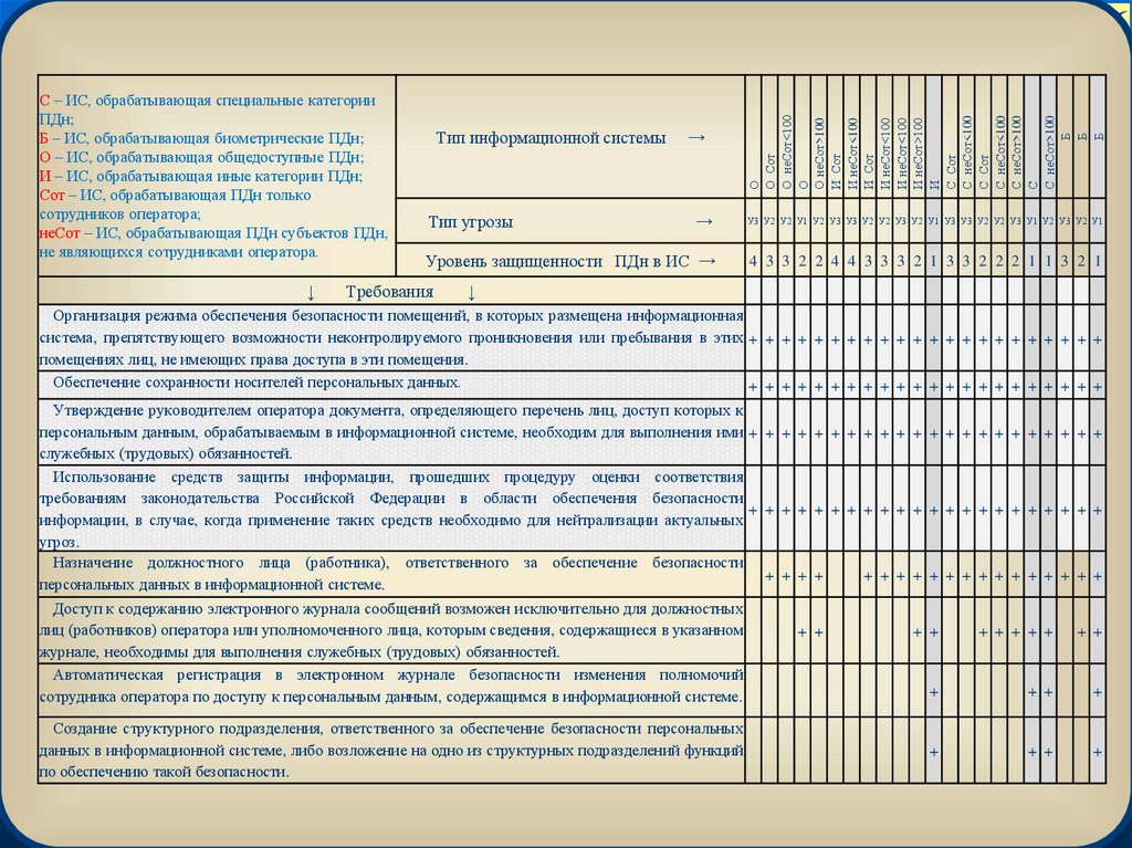 - уровни защищенности,