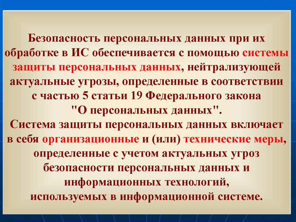 Безопасность персональных данных при ихобработке в ИС обеспечивается с помощью системы