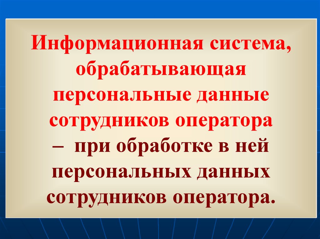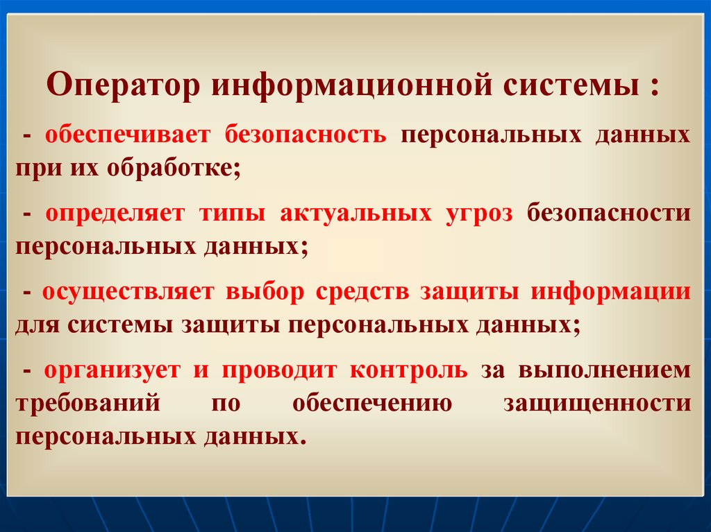 Оператор информационной системы :- обеспечивает безопасность персональных данных