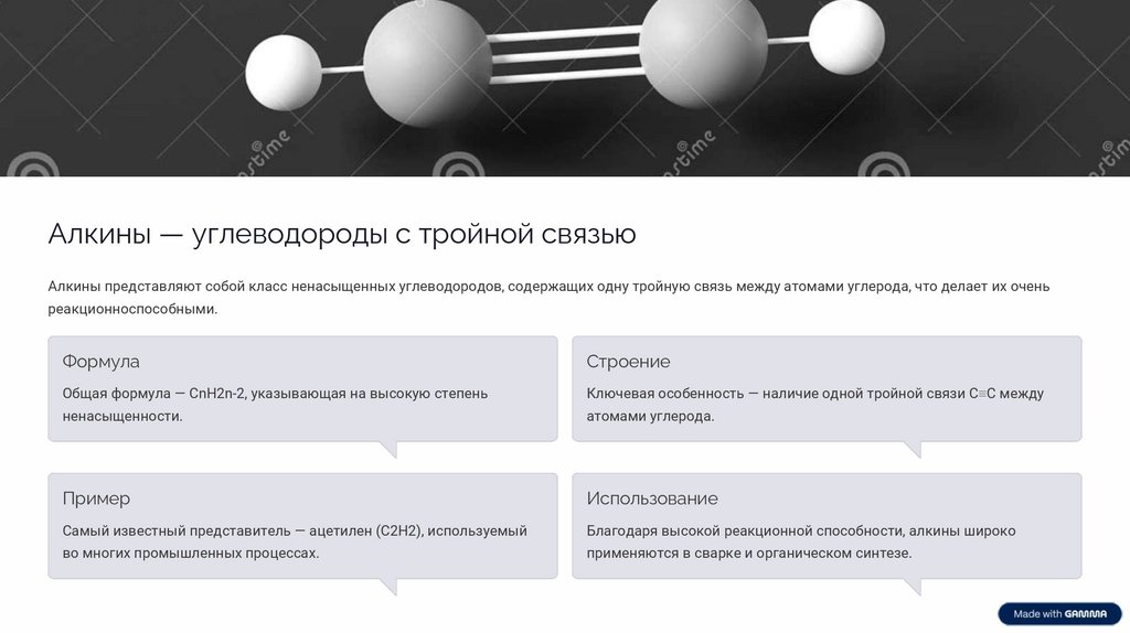 Алкины — углеводороды с тройной связьюАлкины представляют собой класс ненасыщенных углеводородов, содержащих одну тройную связь между атомами углерода, что делает их очень