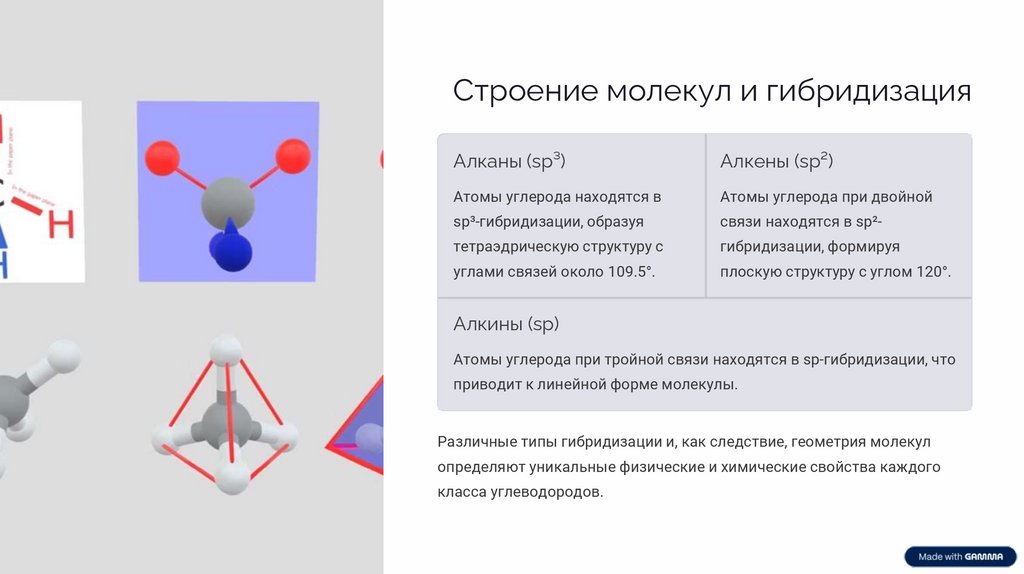 Различные типы гибридизации и, как следствие, геометрия молекул