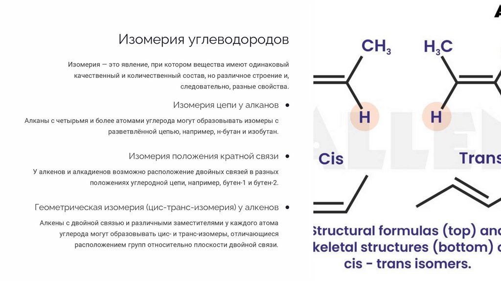 Изомерия углеводородовИзомерия — это явление, при котором вещества имеют одинаковый