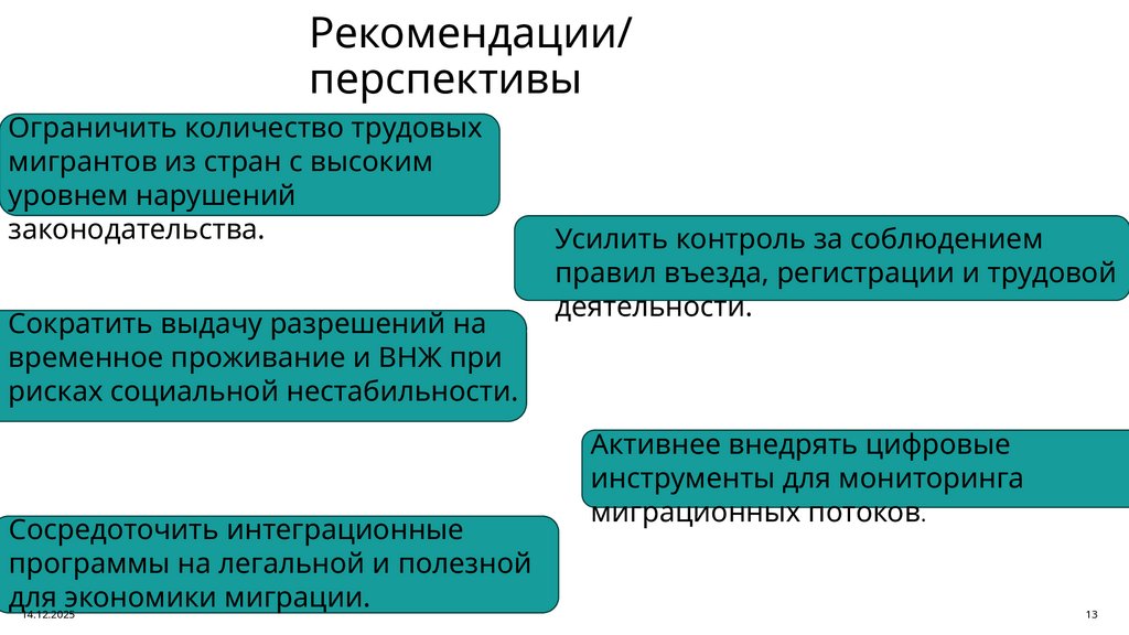 • Инструменты регулирования: патенты, квоты, ВНЖ, РВП, контроль въезда.