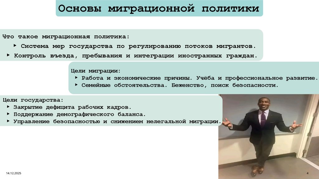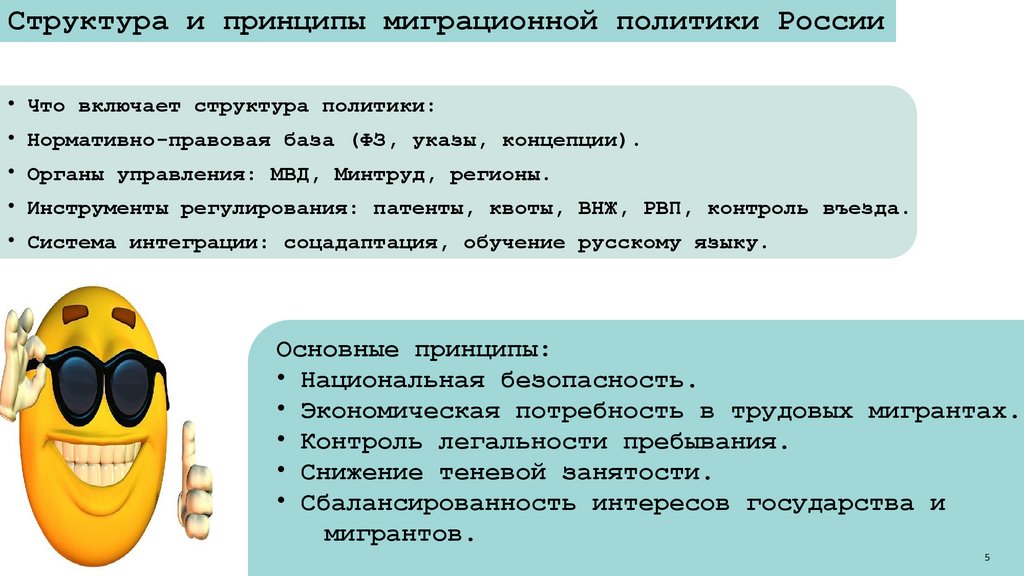 Структура и принципы миграционной политики России• Что включает структура политики:
