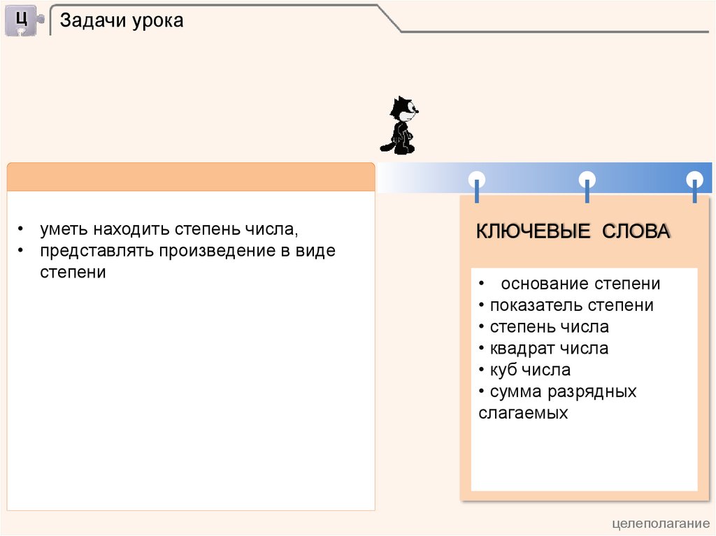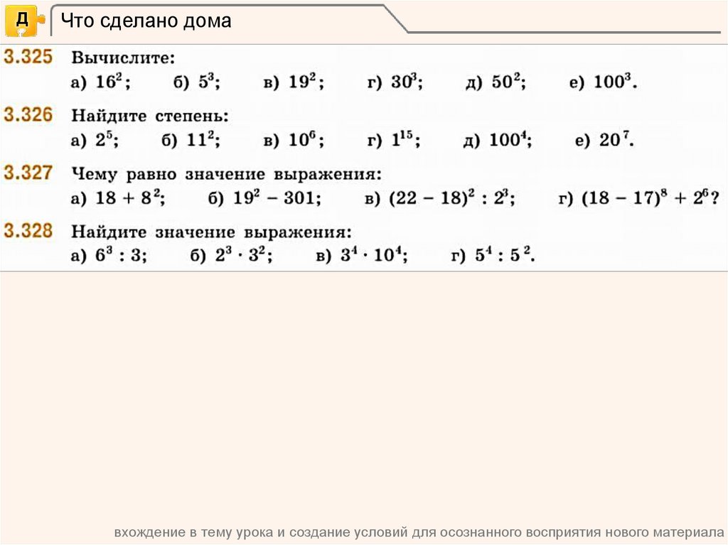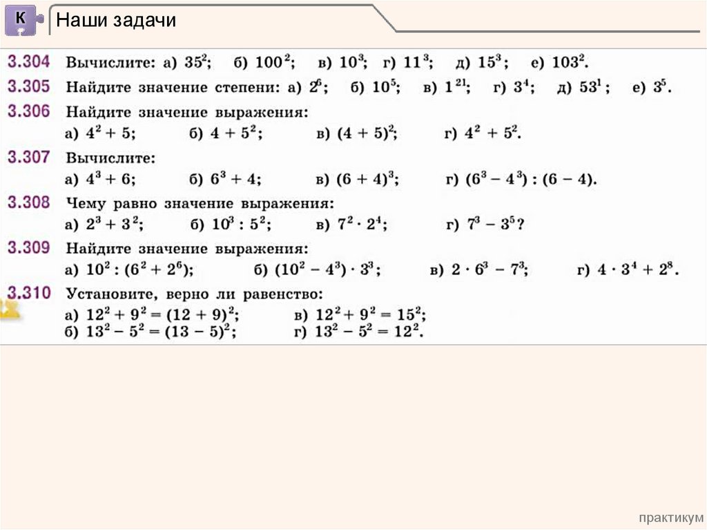 • уметь находить степень числа,
