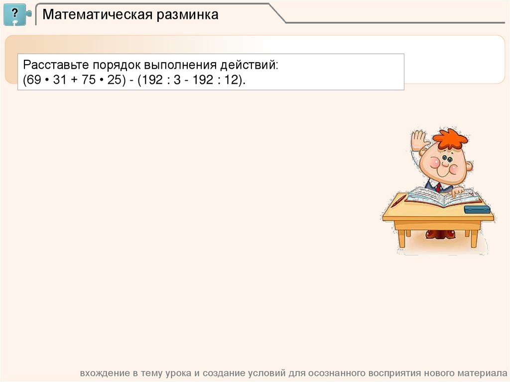 вхождение в тему урока и создание условий для осознанного восприятия нового материала